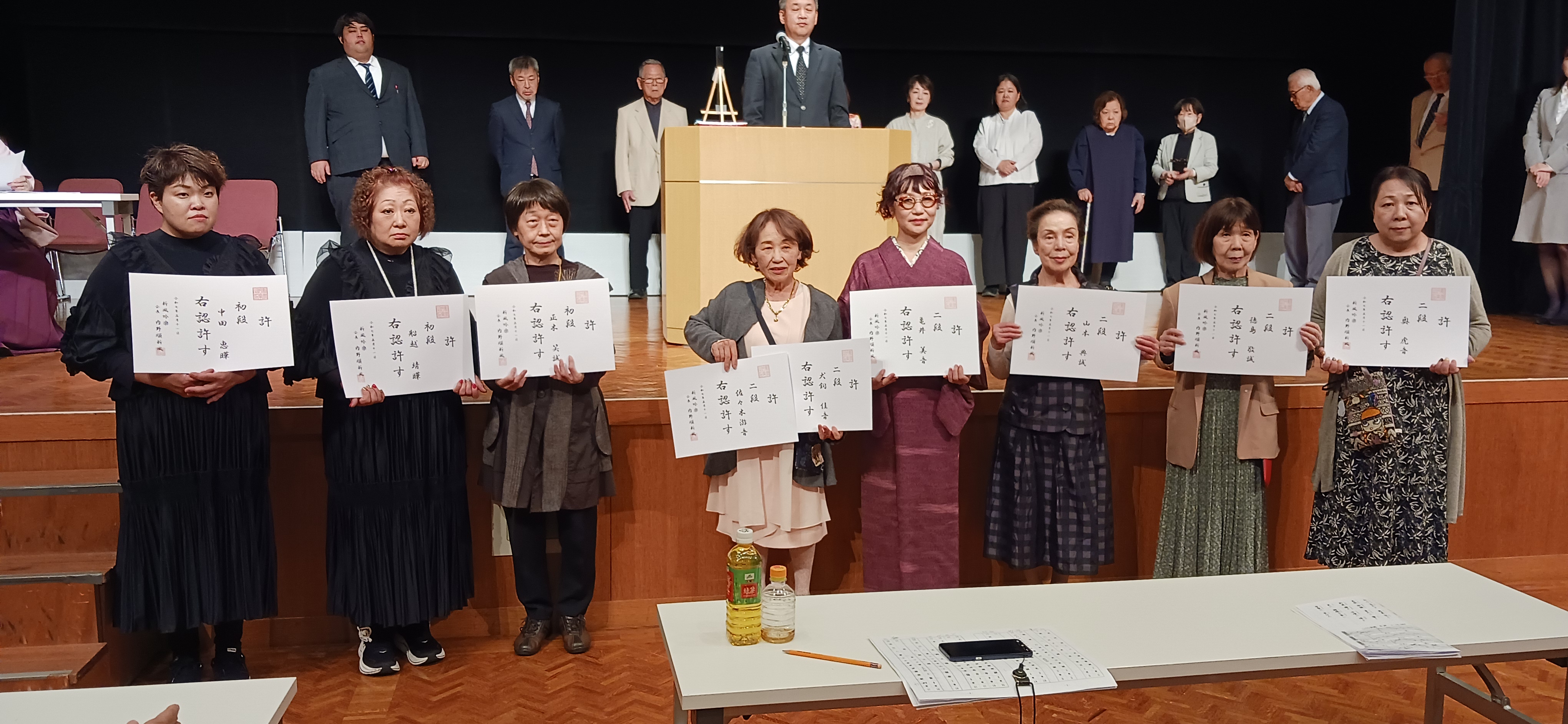 H29年9月3日(日) ☆☆日本コロムビア吟詠大会 ![]() ☆☆日本コロムビア吟詠大会 令和4年7月3日入賞 田村・小笠原・山下・利森 ![]() 令和5年5月14日昇段審査会 利森樹新・斉藤明新・ 山下好誠・鵜飼鶴誠・東谷東誠・長谷中文誠 ・皆さん昇段、おめでとうございます、 ・ ☆☆令和元年、5月19日 昇段・昇格審査会 吟詠会では新人部 利森樹誠(優勝) 初段部 田邊節誠 (優勝) ニ段部 小笠原潔誠(優勝) 吟詠会 八段部 中西正新 吟詠会 新風之部 越智騰新風 吟詠会 純師範之部 田村誠新風 令和元年 5月19日・吟詠会の皆さん (欠員・伊藤・津川・中西・寺園・) 平成29年 8月27日 枚方交野大会 第33回枚方交野競吟大会 (出吟者88名) 脇田彰太さん(優勝)ベルにて撮影 ☆☆おめでとうございます☆☆ 第2回 USG新風発表会 H30年10月21日 (詩吟 和歌 歌謡吟 舞 その他) 場所 守口生涯学習情報センター(ムーブ21) 田村誠新風 (九頭竜川詩吟いり) 第1回 USG新風発表会 2017年10月8日 (詩吟 和歌 歌謡吟詠) ![]() 吟詠会 H28年楽寿荘(忘年会) H27年1月 新年会 仙亭 |